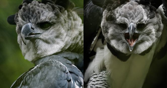 U harpii (jak u wielu ptaków drapieżnych) samice są wyraźnie większe. W praktyce oznacza to, że to ona często wygląda jak „potwór z dżungli”, a samiec jest wyraźnie drobniejszy.